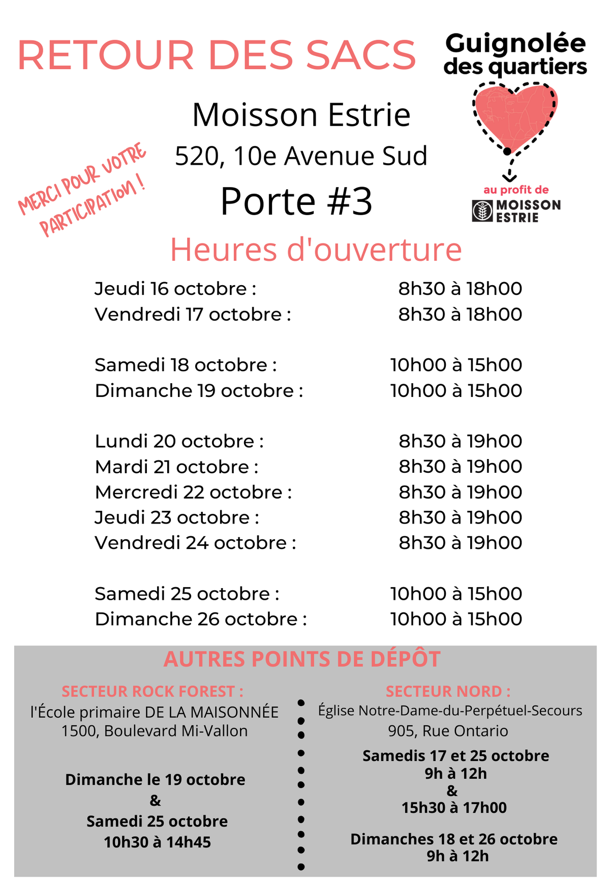 ou par courriel à guignolee@moissonestrie.com ou par téléphone au 819 822-6025 #135